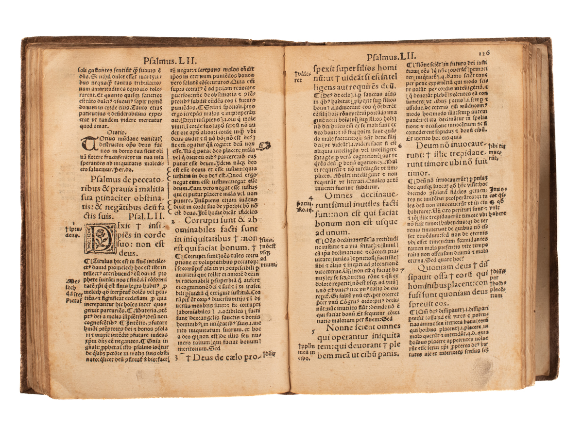 Five vols, large 4to, with pp. [iv] and [ii] of preliminaries in vols I and V not recorded in Darlow & Moule, wanting final leaf of variant readings in vol. IV; bifolium I X1.4 misbound within X2.3; text in Greek, ornamental initials at start of each volume, stipple-engraved vignette head-piece to I A1r (Genesis); minor worming throughout (affecting a handful of words per page in some sections, occasionally repaired with paper or tape), occasional dampstains, foxing, and other blemishes, crude repair with some staining to gutter of π1–(1)1 of vol. I, small holes to (16)1 of vol. II and ъ2 of vol. V, paper-flaw to fore-edge of (2)2 of vol. II; bound in modern black morocco, gilt red morocco lettering-pieces to spines; very slightly scuffed; occasional pencil annotations.